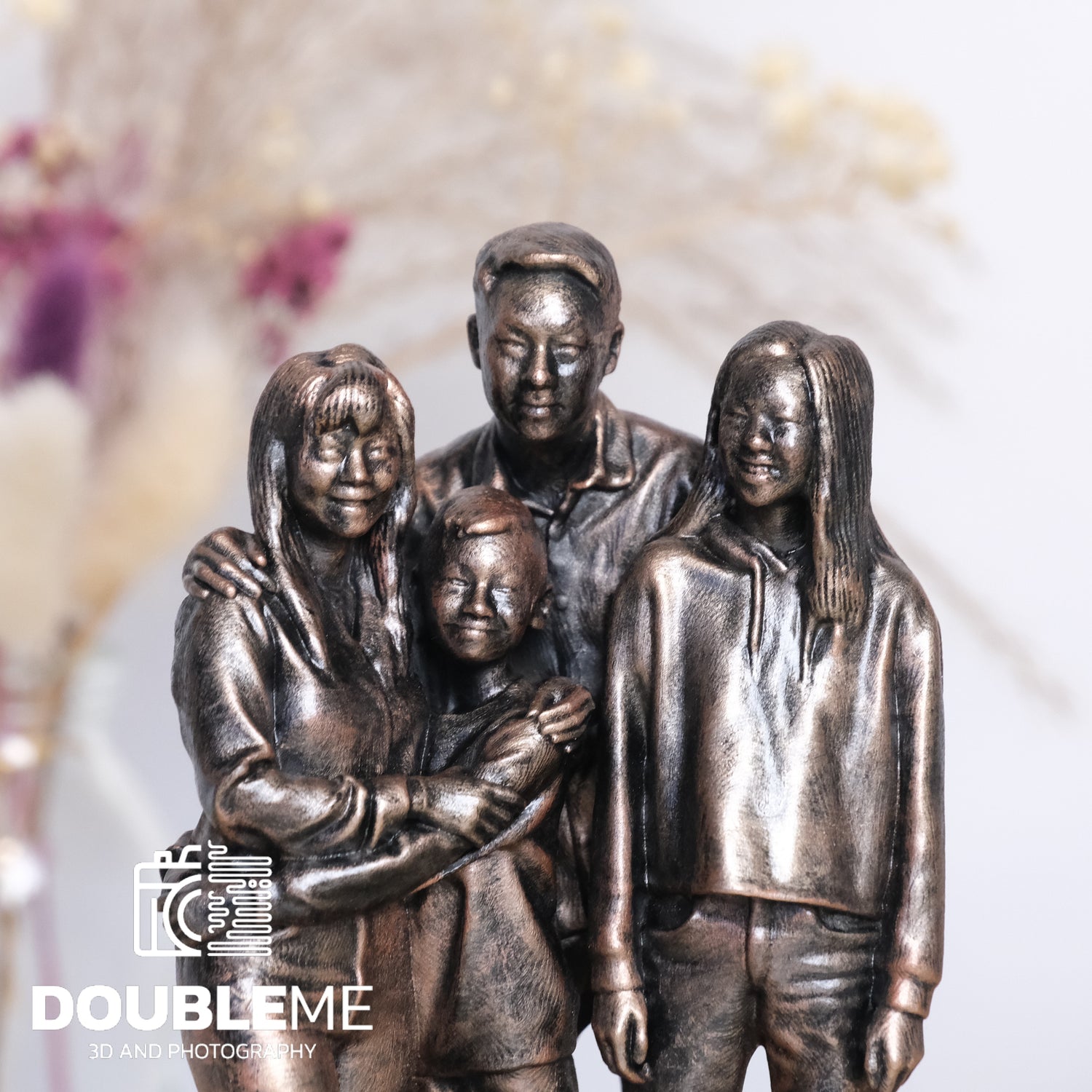 Een klein standbeeld van jou of jouw familie/vrienden, maar dan met een brons coating. In dit geval komt er een coating over het beeldje heen van echt brons, de buitenste laag is in dit geval dus verbronsd. Hierdoor kan het beeldje dus ook, net als ieder ander brons beeld, echt een beetje gaan oxideren.